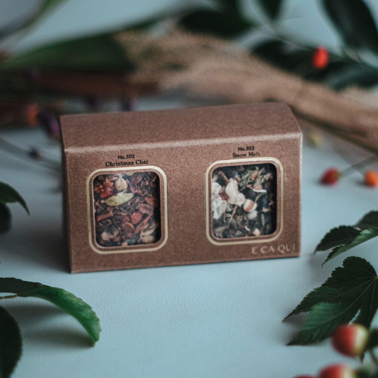 ガラス作家・藤井友梨香さんとコラボレーションした、限定コレクションです。藤井さんがこのコラボレーションのために特別に誂えた「Candle Glass」と、E CA QUIの冬限定ブレンド「Winter Tea Duo」のセットをお届けします。
