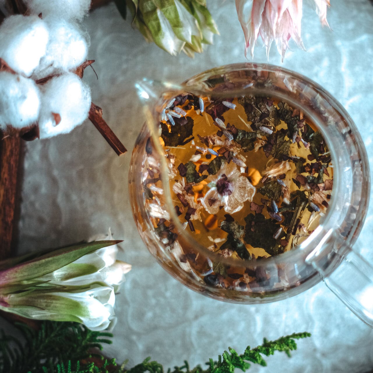 寒い季節の「いたわり」をテーマに、冬の乾燥から喉を守り身体をあたためるノンカフェインティーです。喉の粘膜を保護するハーブと穏やかな温性素材を組み合わせました。味わいのベースは、心地よい焙煎香が特徴のブラックマテ。そこに、ハトムギやマシューマロウのとろみ感、ジュニパーベリーとラベンダーの優しい香りが重なります。